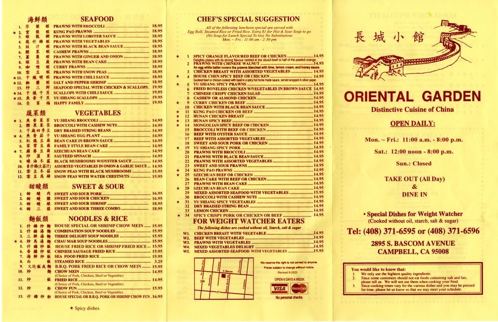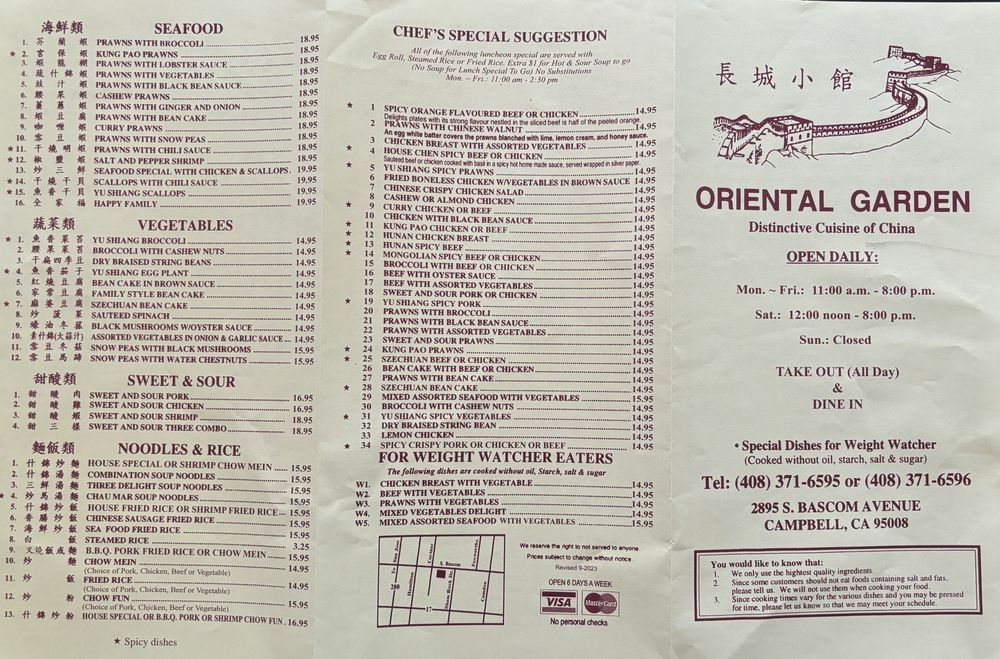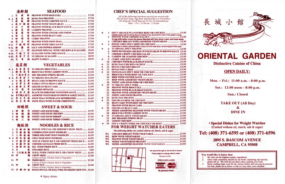Introducing Oriental Garden, a Chinese restaurant located in Campbell, CA. Offering a variety of dishes with vegan and limited vegetarian options, this spot caters to a wide range of customers. With a diverse menu featuring favorites like beef chow fun, shrimp fried rice, lemon chicken, and beef and broccoli, Oriental Garden promises mouthwatering flavors at affordable prices. Customers rave about the delicious food and generous portions, making it a go-to spot for families and groups. While some reviewers note discrepancies in dishes like pork fried rice and hot and sour soup, the majority praise the quality and authenticity of the cuisine. With friendly service and a cozy atmosphere, Oriental Garden provides a memorable dining experience for those seeking authentic Chinese fare in the San Jose area.